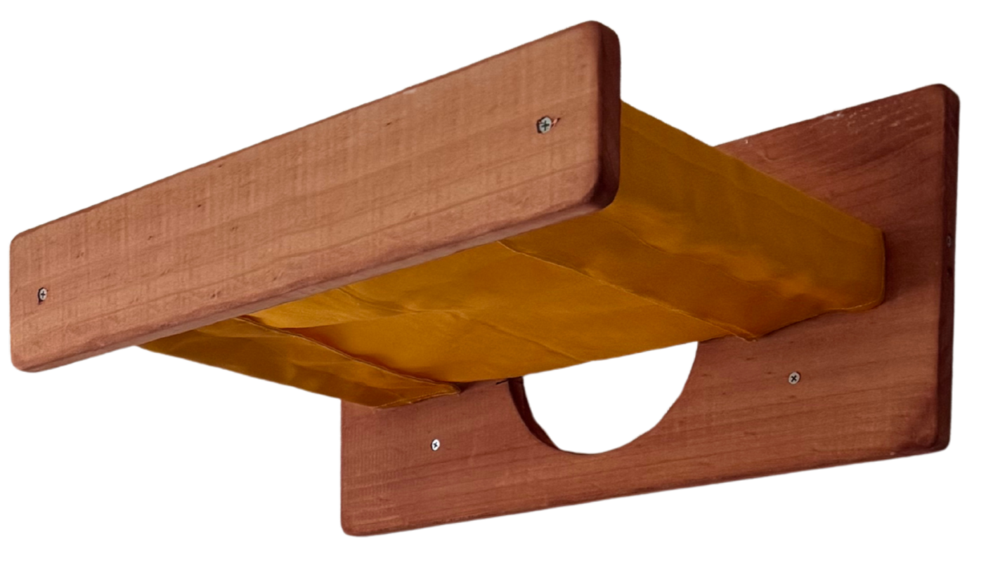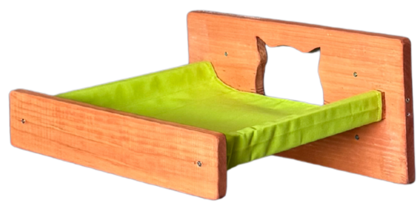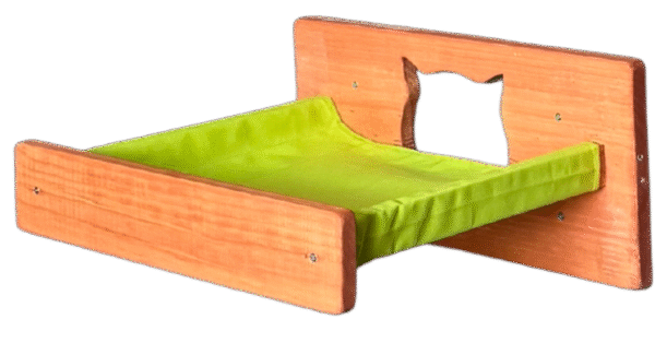 Nuestra hamaca tipo camita está diseñada para ofrecer a tus gatos un espacio elevado, cómodo y relajante donde puedan dormir, observar o simplemente pasar el rato. Fabricada en madera natural y con tela resistente de alta calidad, esta hamaca soporta sin problemas hasta 4 gatos al mismo tiempo.